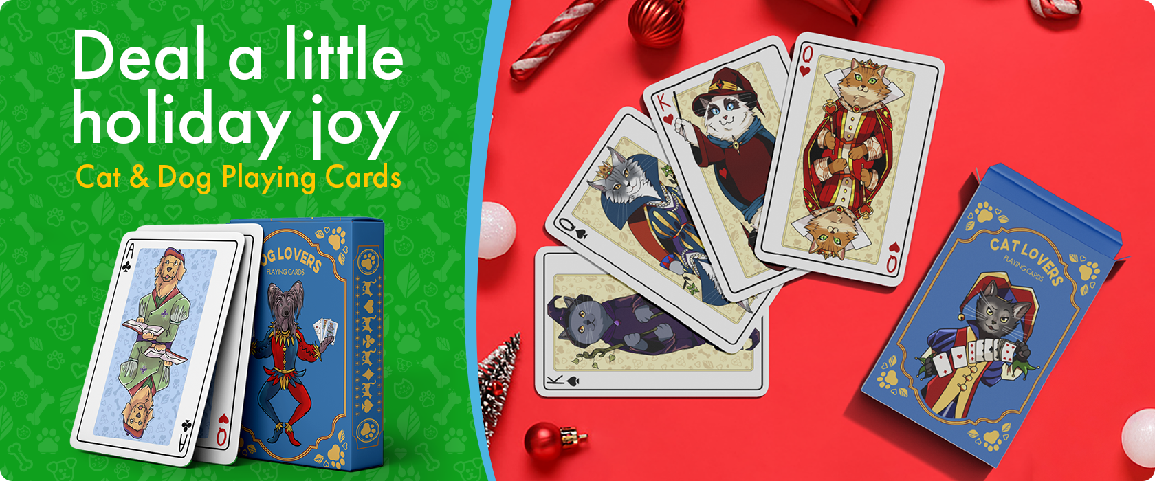 Discover our collection of pet-themed playing cards and related products. Perfect for pet lovers and card game enthusiasts alike.